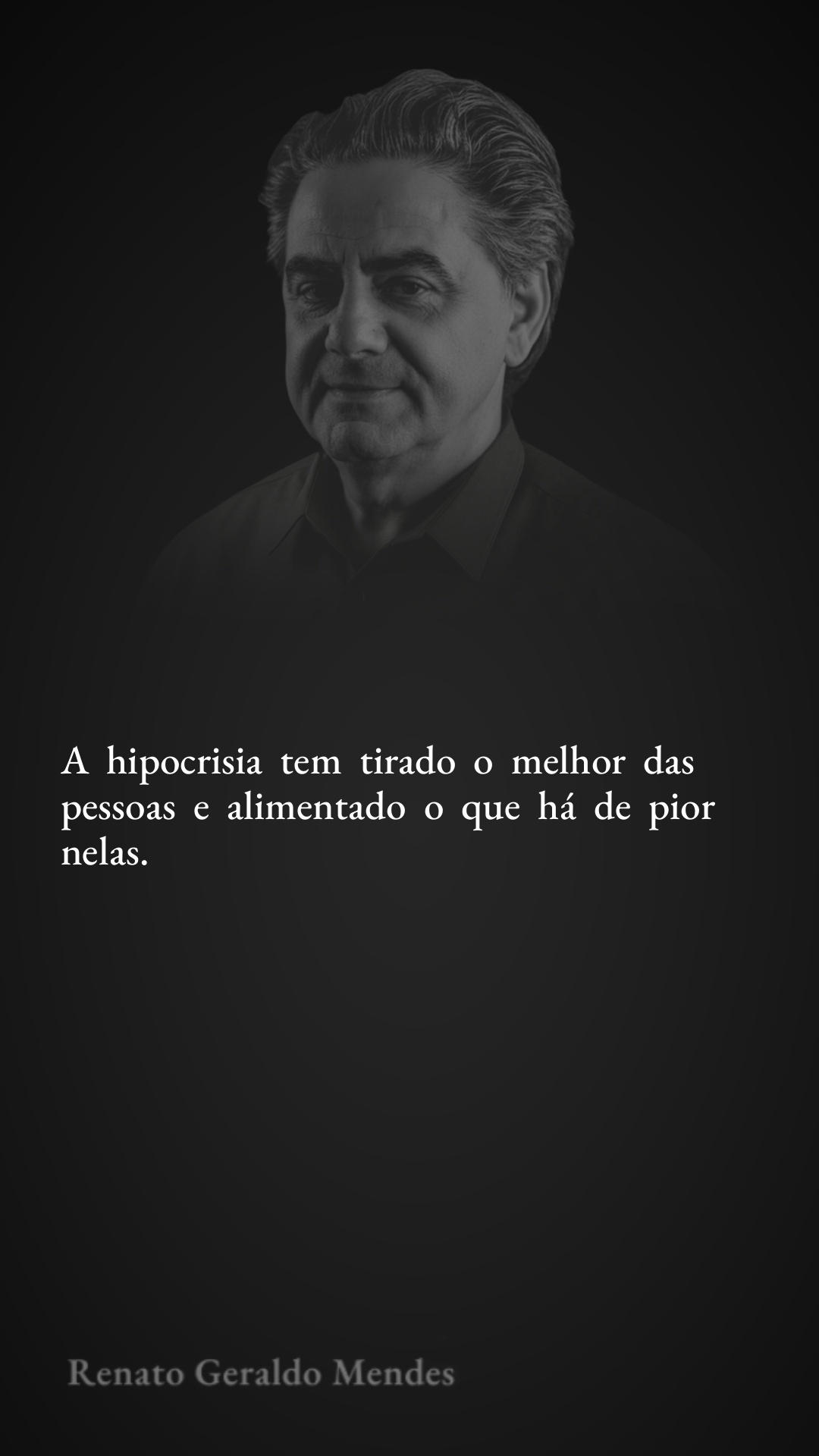 A hipocrisia tem tirado o melhor das pessoas e alimentado o que há de pior nelas.
