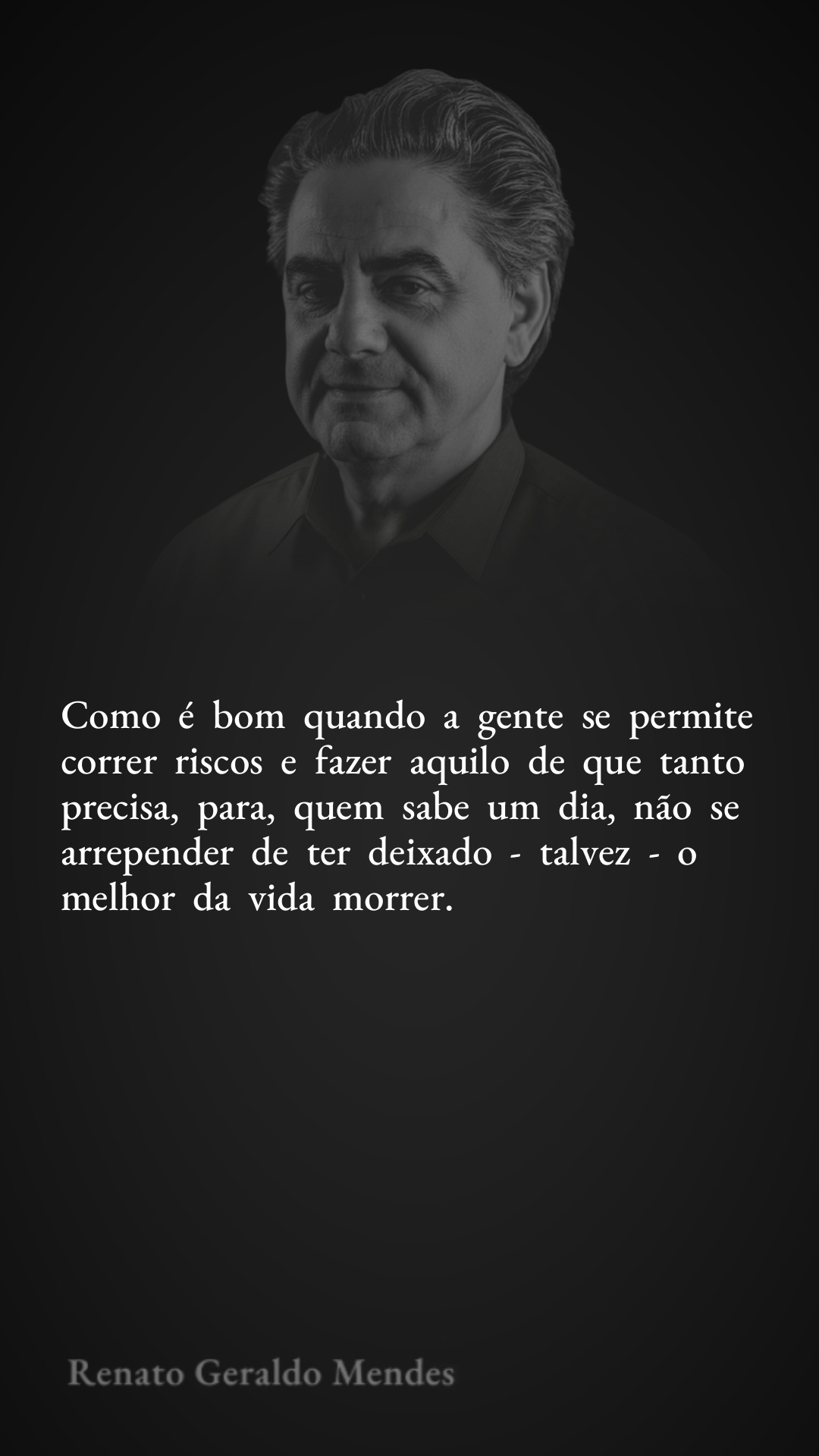 Como é bom quando a gente se permite correr riscos e fazer aquilo de que tanto precisa, para, quem sabe um dia, não se arrepender de ter deixado – talvez – o melhor da vida morrer.
