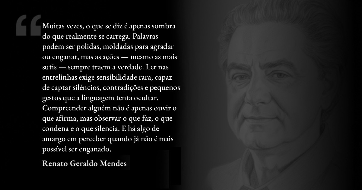 Muitas vezes, o que se diz é apenas sombra do que realmente se carrega. Palavras podem ser polidas, moldadas para agradar ou enganar, mas as ações — mesmo as mais sutis — sempre traem a verdade. Ler nas entrelinhas exige sensibilidade rara, capaz de captar silêncios, contradições e pequenos gestos que a linguagem tenta ocultar. Compreender alguém não é apenas ouvir o que afirma, mas observar o que faz, o que condena e o que silencia. E há algo de amargo em perceber quando já não é mais possível ser enganado.