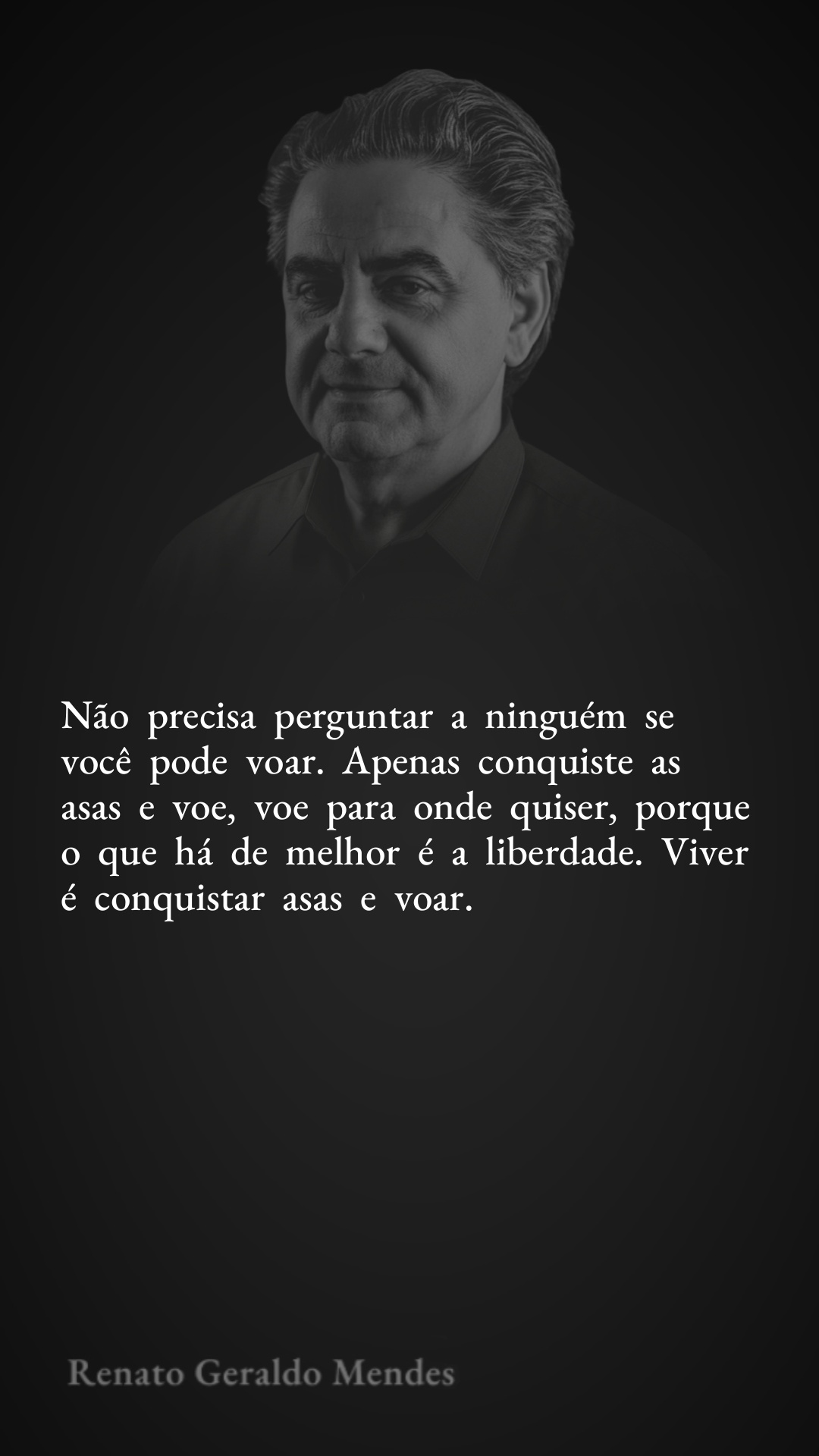 Não precisa perguntar a ninguém se você pode voar. Apenas conquiste as asas e voe, voe para onde quiser, porque o que há de melhor é a liberdade. Viver é conquistar asas e voar.