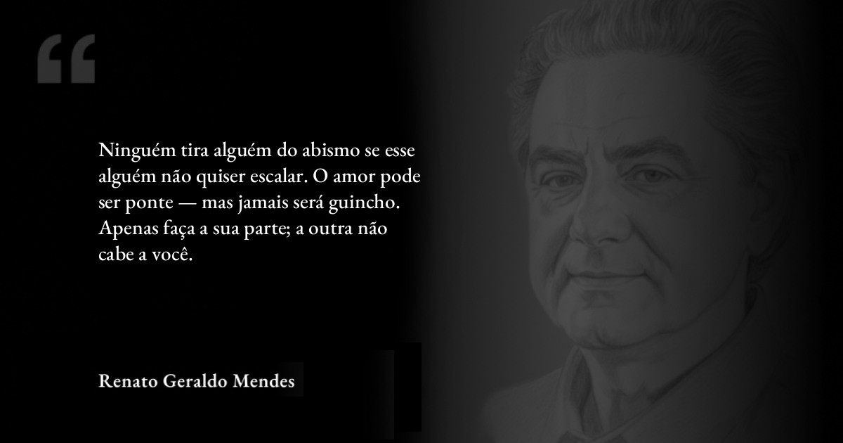 Ninguém tira alguém do abismo se esse alguém não quiser escalar. O amor pode ser ponte — mas jamais será guincho. Apenas faça a sua parte; a outra não cabe a você.