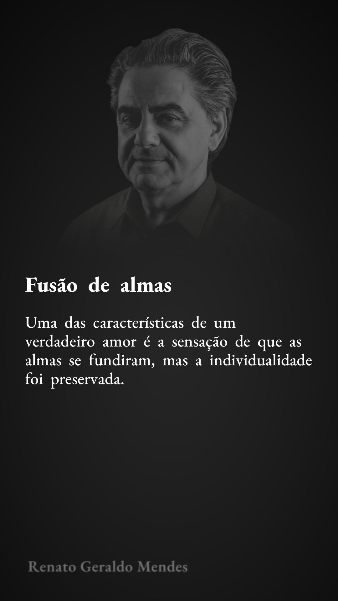 Uma das características de um verdadeiro amor é a sensação de que as almas se fundiram, mas a individualidade foi preservada.