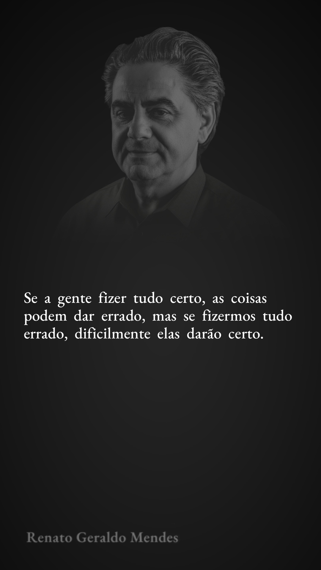 Se a gente fizer tudo certo, as coisas podem dar errado, mas se fizermos tudo errado, dificilmente elas darão certo.